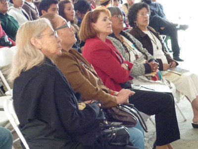 Mesa de los invitados (izq. a der.): Juana Villa Poblano, Lidya Warner Urías, maestra Martina Montenegro Espinoza (Coordinadora de la Casa de Cultura, Tijuana), María de la Luz Villa Poblano, María Magdalena Castillo Romero, y Lic. Armando Estrada (Delegado estatal de Conaculta).