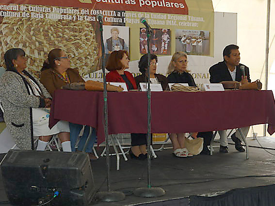 Mesa de los invitados (izq. a der.): Juana Villa Poblano, Lidya Warner Urías, maestra Martina Montenegro Espinoza (Coordinadora de la Casa de Cultura, Tijuana), María de la Luz Villa Poblano, María Magdalena Castillo Romero, y Lic. Armando Estrada (Delegado estatal de Conaculta).