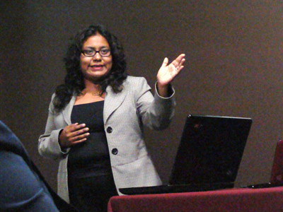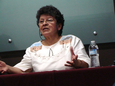 Maria de la Luz Villa Poblano, Presidenta de Milapá A.C. explica a los estudiantes los usos y costumbres de los indígenas de Sta. Gertrudis y San Borja.
